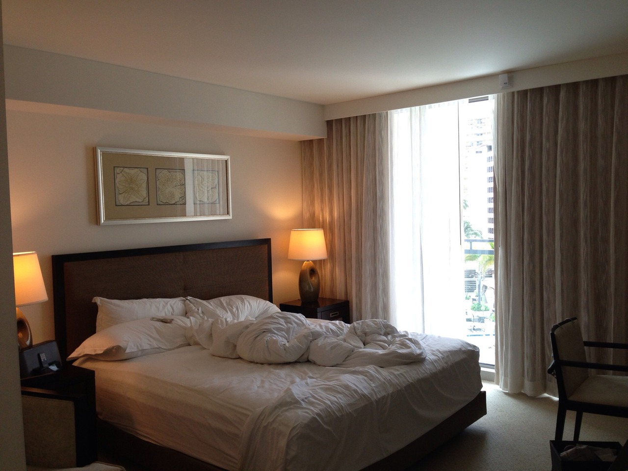 私は西向き(ダイアモンドヘッドと逆向き)の10階くらいのお部屋に泊まりましたが、正面が開けていて眺望がよく、開放感がありました。バルコニーからは海が一望でき、そこでビールを飲むのが最高に気持ちよかったです。