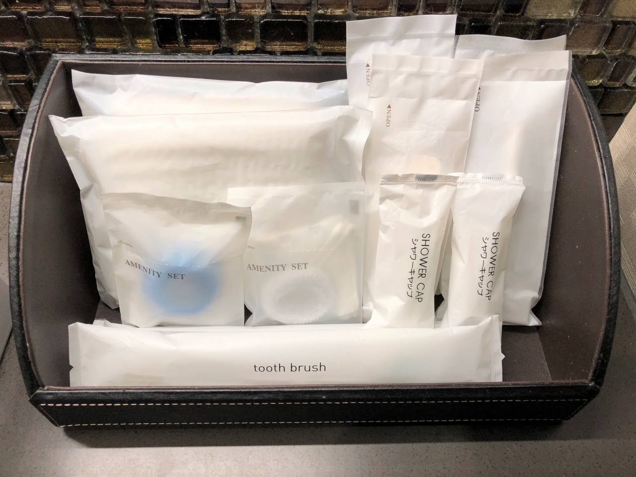 アメニティは歯ブラシセット、シェーバー、シェービングクリーム、