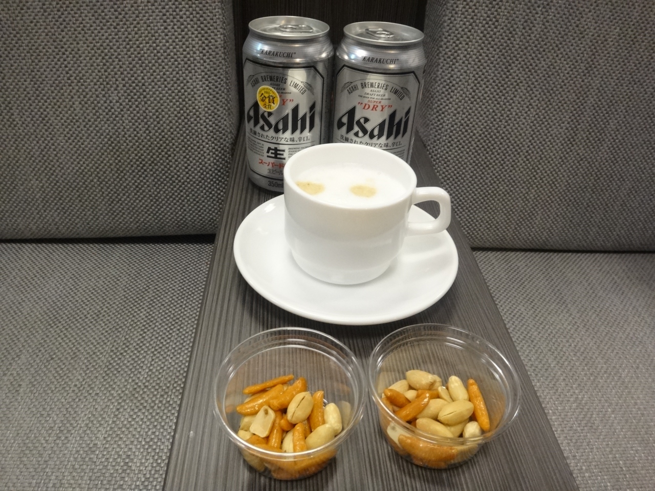 - カードラウンジなのに生ビールなどのアルコールが無料。おつまみ&お菓子は『プレミアムラウンジ セントレア』の方が種類が多いけど食べ放題