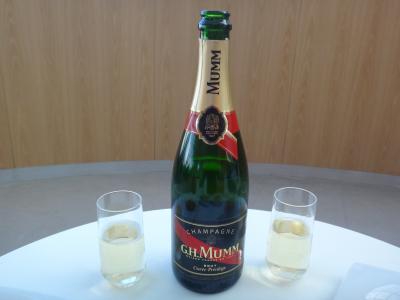 - ホットミールもある。嬉しいのはアルコールの種類が豊富。泡はフランス産のシャンパン。