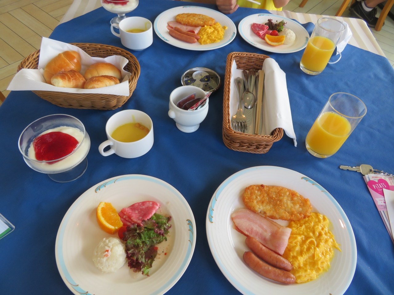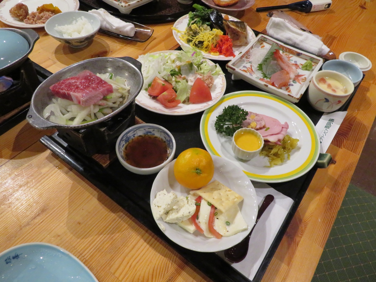 食事はハーフバイキングで、さすが牧場直営ホテルだけあってお肉や乳製品が特に美味しかった。
