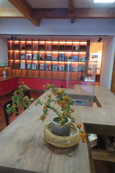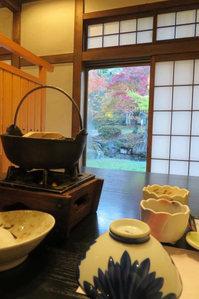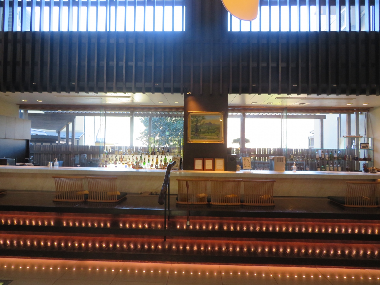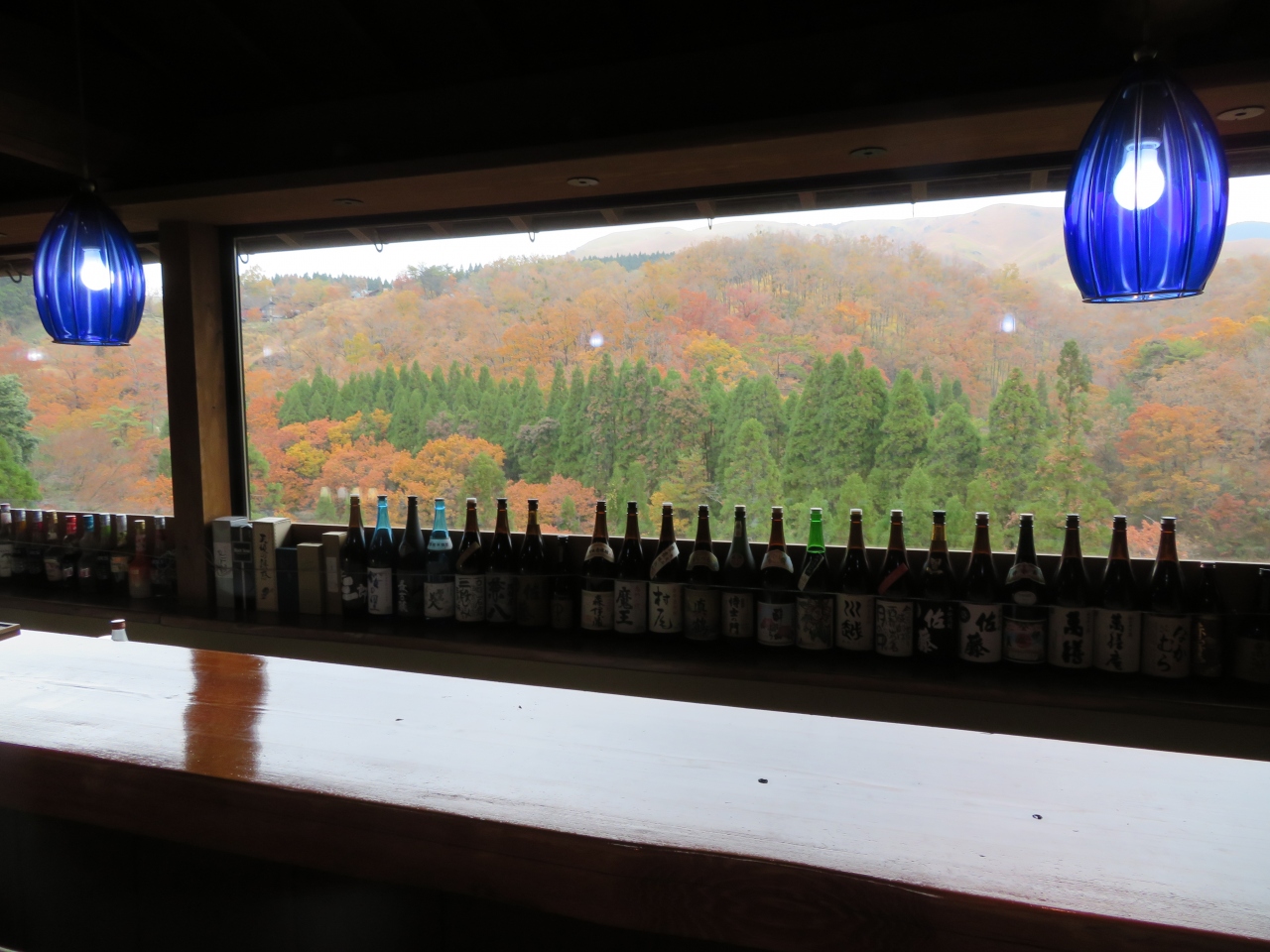 宿泊したのは2月だが11月半ばに湯めぐりでも伺った。敷地内の紅葉が見事で、空気まで赤いんじゃないかと思うほど。湯めぐりの際もお願いしたらラウンジをのぞかせてくれた。ラウンジの眺めは評判通りだが、是非梁も見上げてほしい。さすが材木屋、名前に恥じない贅沢な造りになっている。