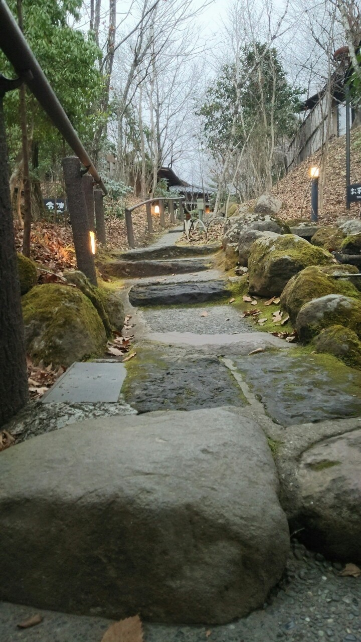 フロントまでも階段、そこから渡り廊下のあと離れ、その先に本館だから基本的に車椅子の人は無理。