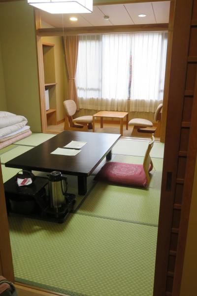 広い部屋貸し切れる。ふすまだけどエアコンの効きも申し分ない。マイナスは布団の薄さ分。