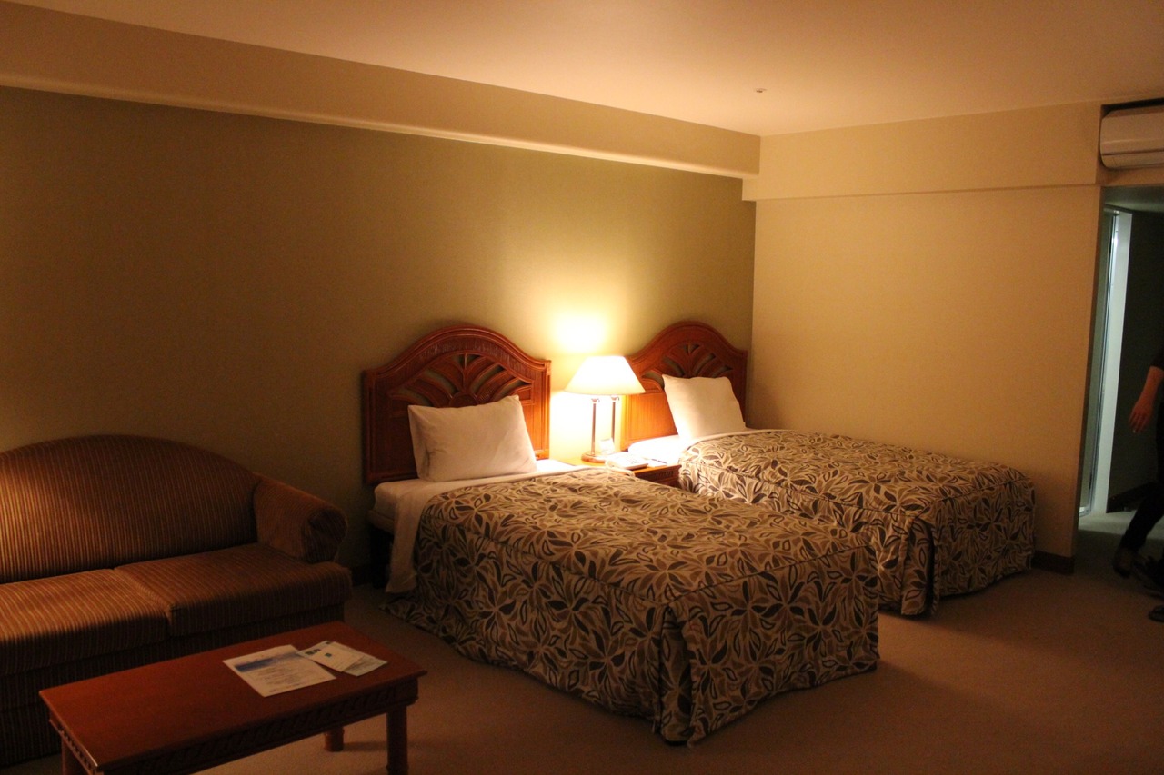 中部の恩納村にあり、美浜アメリカンビレッジや美ら海水族館にもアクセス抜群です。ホテルにはグリーンビューとオーシャンビューがあり、今回はグリーンビューに宿泊しました。部屋は比較的広く、窓からはホテル前の小高い丘?山?が見えます★