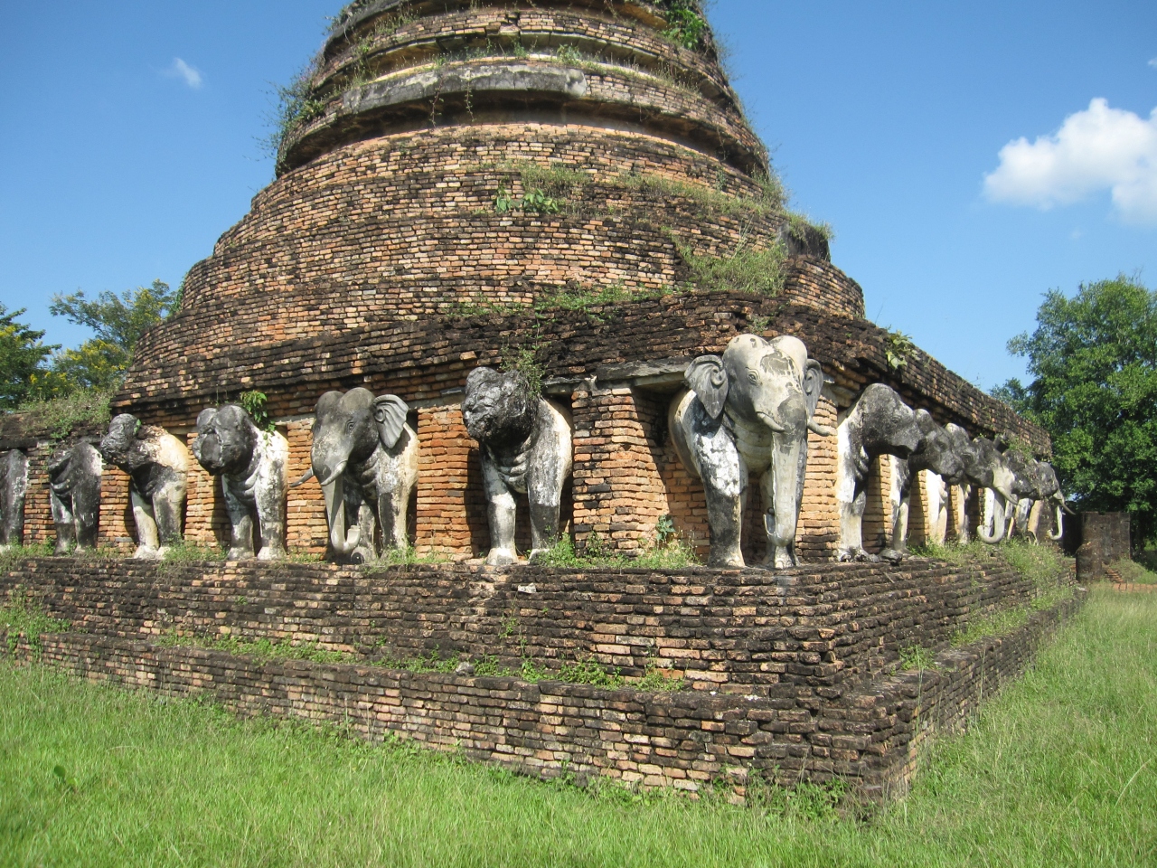 ここの仏塔の特徴は、周囲の象の彫刻です。