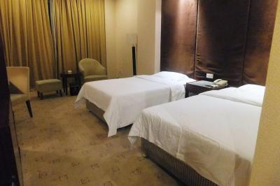 ツアーガイドから「窓から川が見えてステキですよ!」と言われましたが、窓は汚れていて黄色く、景色を眺めるどころではありませんでした。結構大きなホテルで、高級感もありますが、スタッフのクオリティに関しては、エレベーターでも、スタッフが平気でぶつかりながら入ってきて、押しのけるように出て行ったり、フロントで英語はまったく通じない上、「ムリムリ!」と追い払われ、「ああ、さすがチャイナ(笑)」って感じでした。