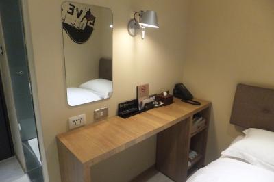 部屋は窓がなく、とにかく狭い。狭さではイタリアのホテル パラディオ、大阪のナンバプラザホテルの上を行きますが、すべてがコンパクト。