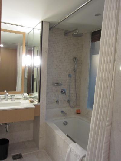 - バスタブの仕切りがカーテン。ビジネスホテルじゃないんだから^^;