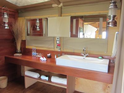 人生初のサファリという事で(最初で最後になるかもしれないし)旅先からホテルに至るまで、いろんな方のクチコミや旅行記を参考に選択した結果。。。大正解でした!!日本を出発してからもサバンナ行きを頑なに拒んでいた主人ですら、この巨大テント部屋に一歩足を踏み入れた途端、感歎の声をあげ一気に上機嫌になったほどです。このサファリリゾートには11の部屋があり、全て巨大テントでできたヴィラタイプで、隣の部屋との間隔が充分に取られています。必要以上の物や華美な物がなく簡素な感じをうけつつも、使い勝手と居心地の良さには感心するばかりでした。各部屋の近くにはソーラーパネルがあり24時間電気だって使えちゃいます♪出発前主人が一番気にしていた虫関係はほとんど気にならず、就寝中の蚊においては皆無でした。またこのリゾートはオールインクルーシブタイプで、1日3回の食事・飲み物(アルコール含む)・洗濯・部屋でのオイルマッサージまでも宿泊料金に含まれており、中でも一番驚いたのが、空港送迎&1日2度のゲームドライブが完全パーソナルだった事!私が旅先選びの段階で調べたタンザニアの最高級サファリリゾートであってもゲームドライブは他の宿泊客との乗り合いが通常で、それをパーソナルにしてもらうと追加料金(これがけっこう高い・・・)が発生してしまう。他の宿泊客と合宿気分で盛り上がりたい方は別ですが、プライバシーや贅沢感重視の方には断然オススメ!ゲームドライブではチーターこそ見る事ができませんでしたが、ライオンはじめセレンゲティに生息する代表的な動物と何といっても地平線を右から左まで埋め尽くすヌーの大群は圧巻でした。