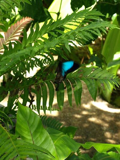 「ユリシス(=オオルリアゲハ)という青い蝶を1日に4回(3回?)見ると幸せになれる」という言い伝えがあるのですが、ここに来れば確実にユリシスを見ることができます。