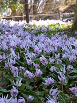 町歩きをしてお昼頃戻ると、日射しがを浴びて花が開き、きれいなカタクリを見ることができました。