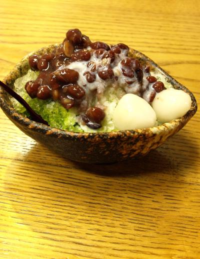 8月の雨上がりの日で外が蒸し暑かったので、こちらで休憩して冷たいぜんざいと抹茶かき氷をいただきました。