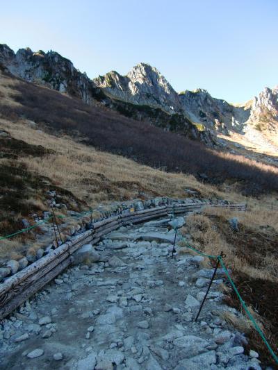 標高2612m。今から約2万年前に、氷河のゆったりとした流れにより侵食されて形成されたカール(半円形の窪地)で、畳を千枚敷いた広さがあることから「千畳敷カール」と呼ばれているそうです。