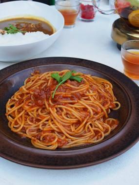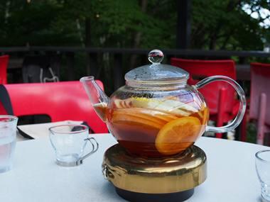 テラス席で、名物のフルーツティーとカレー(1380円)、パスタをいただきました。