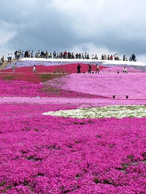 茶臼山高原山頂に広がる芝桜が見事です。見頃は5月末頃。