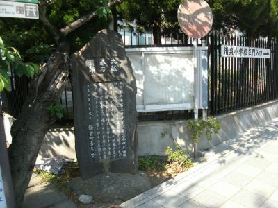 横浜ゴム(工場)正門横付近、道路沿いに大きな横型の碑が建てられています。