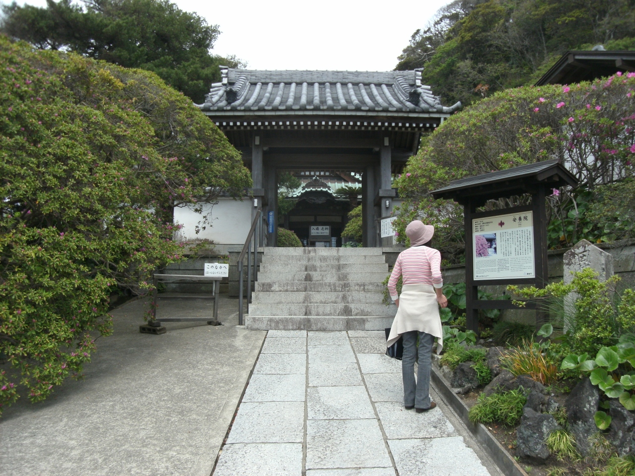 花木・植木で一杯の境内に、ここ藤沢らしく紫咲くフジ棚の下には石像が祀られていました(すいません・名称わかりません)。4月下旬、フジが満開でした。