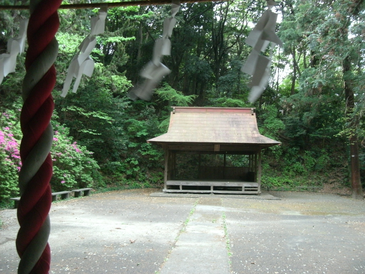 石段中程の途中に石塔、稲荷社があるところが、もとの神社・参道なのでしょうか。草薮の中に旧道(坂道)発見、但し途絶えていました。