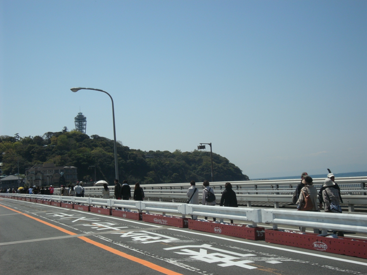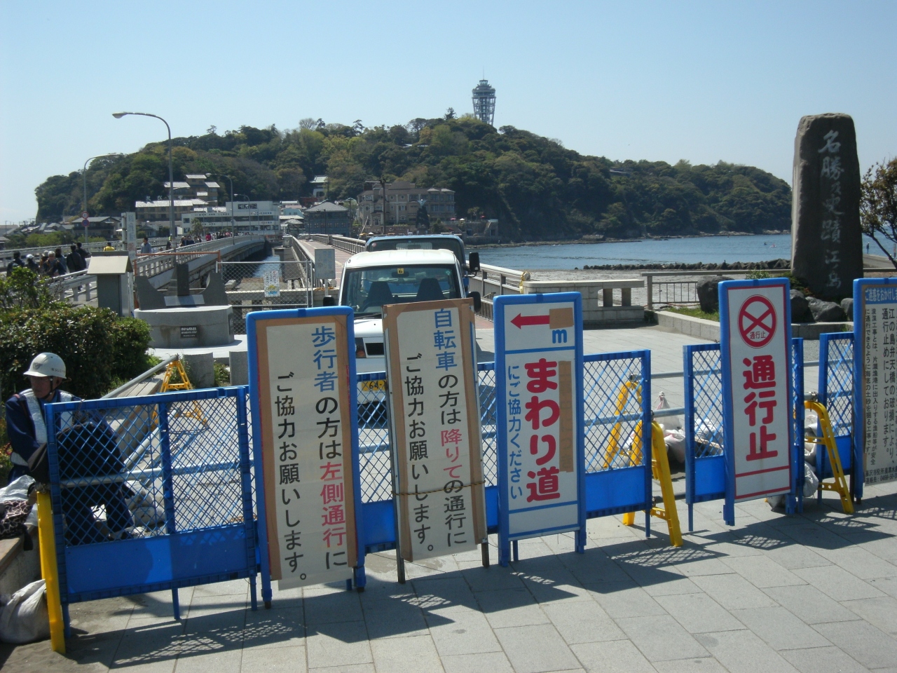江の島に徒歩で渡るには、江の島大橋車輌専用道路に仮通路が設けられている。