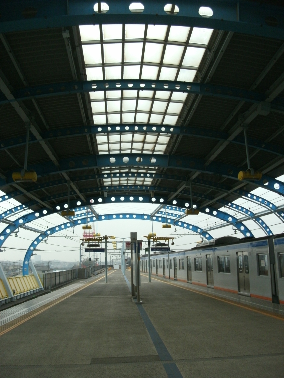 エー・・ここヨコハマ。田園情景残る駅、しゃれたアーチ屋根いいけど。