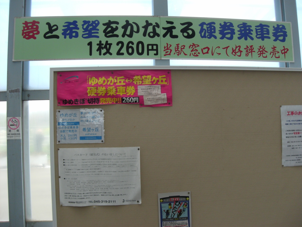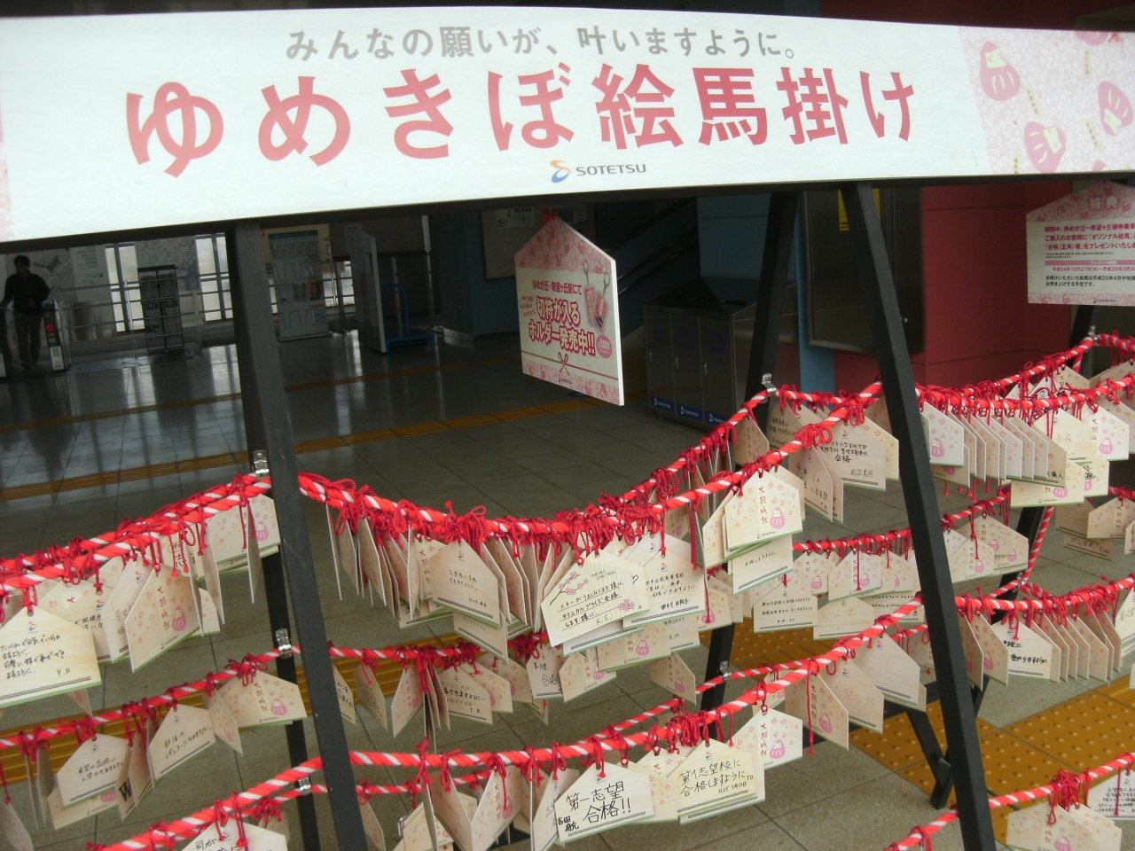 このシーズン(3月ですが)、縁起切符が売り出し中でした。希望ヶ丘駅間の切符が合格お守りとかで受験者には話題だそうです。構内には絵馬もありました。
