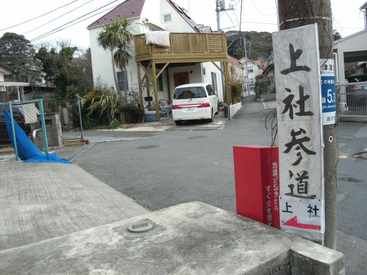 - 腰越駅4〜5分、鳥居の前、車に注意