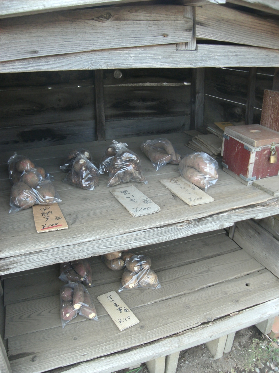付近は街並みから少し外れ川岸に近くちょっと田園風情。神社の参道入口の農家の庭先(正門)には無人農産物野菜の直売小屋がありました。のどかなお参りができます。- 旅行時期