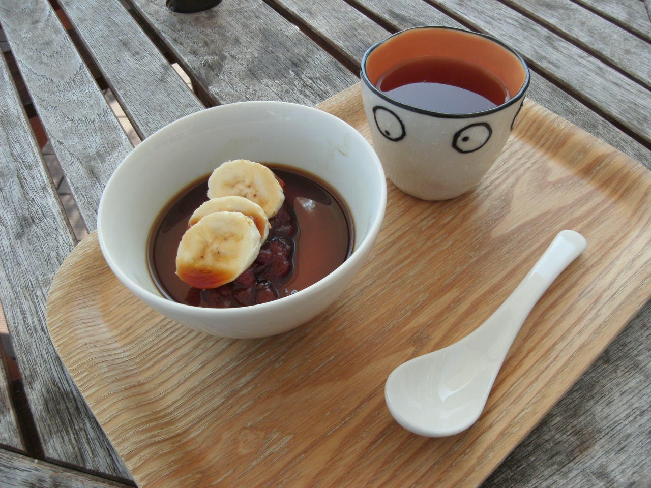 テラスモールの「鵠沼プリン」・・TVで放送されたという人気スイーツ。午後にはなくなるよといわれている・午前中に行きました。テラスモール3階のKUGENUMA SHIMIZUへ。プリン(抹茶)とアズキ、バナナの輪切り2切・黒蜜かけて召上れ・・これがうわさの鵠沼プリン。テラスモールなので、3階外のテラス席で。甘い口当たり、黒蜜が効いている。抹茶の風味を好む方は黒蜜かけないほうがいいかも。ほうじ茶付き(またはコーヒーチョイス)。