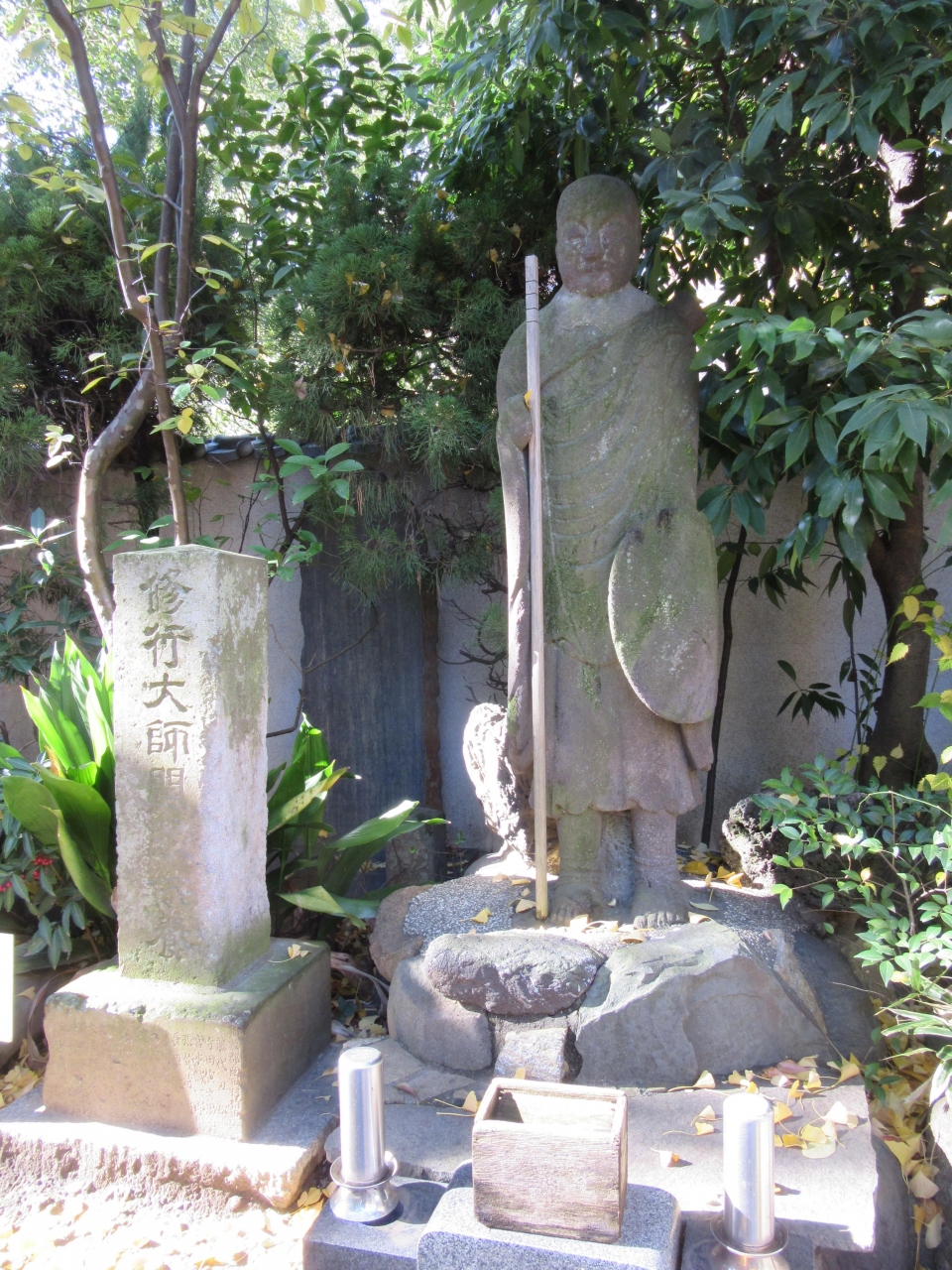 弘法大師空海開山(806~810年)のお寺です。弘法大師修行像や十三重塔・石造(小さい六地蔵等)類、句碑の他、英霊堂、稲荷堂があります。また、大きなイチョウの木は品川区の天然記念物で秋の黄葉は見ものです。