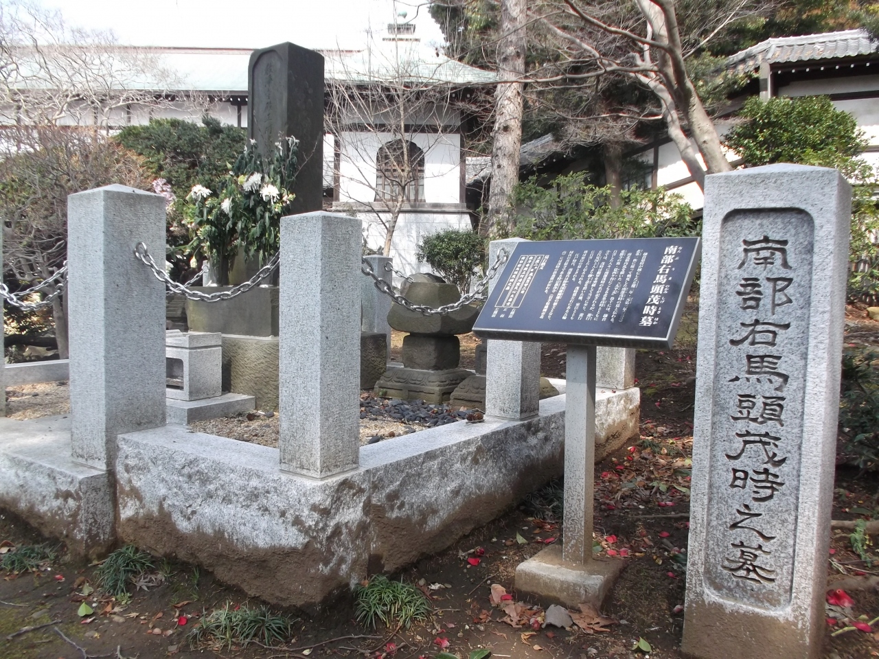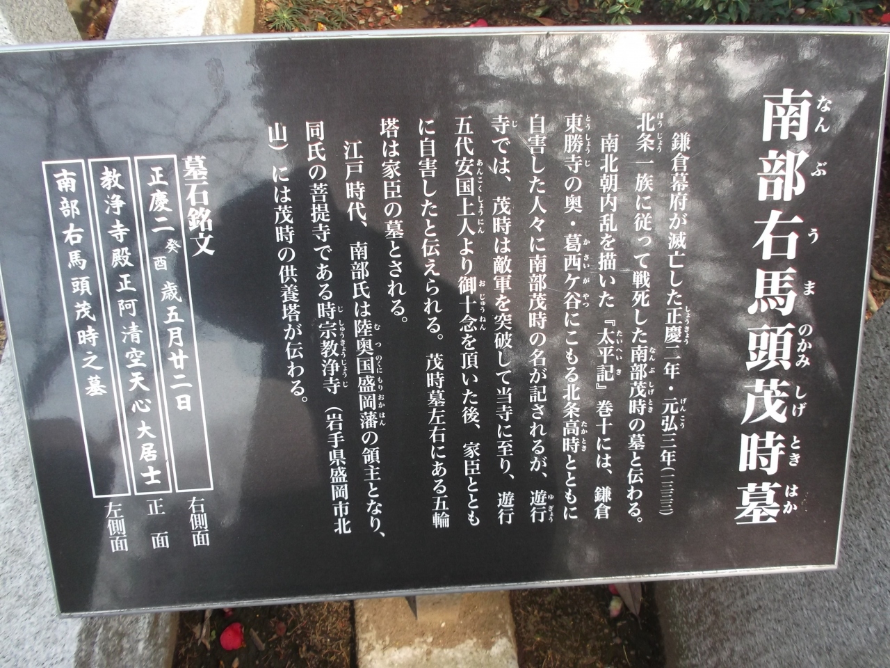 藤沢の時宗総本山・清浄光寺(遊行寺)の境内、ハクモクレンで有名な放生池の畔(池の裏手に小公園風のところがあり、句碑・石碑が散在)の一角に鎌倉武将の墓の標識がありました。