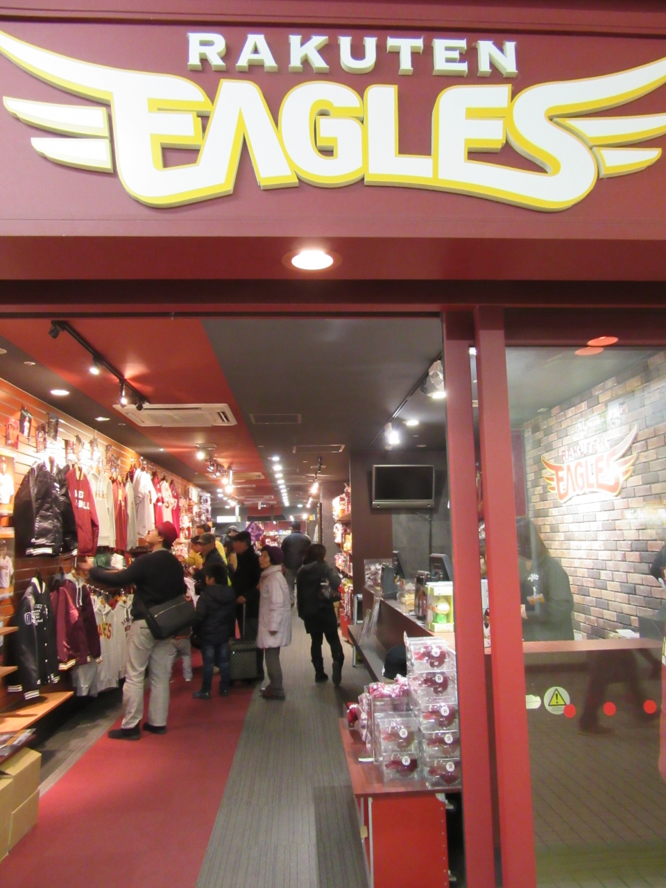 楽天イーグルスのオフィシャルグッズショップ。楽天カラーに染まった店内、地元民・ファンの方は当然ですが、観光旅人も中を覗き立ち寄るそうです。そして、俄かファンになったりして・・・。- 旅行時期