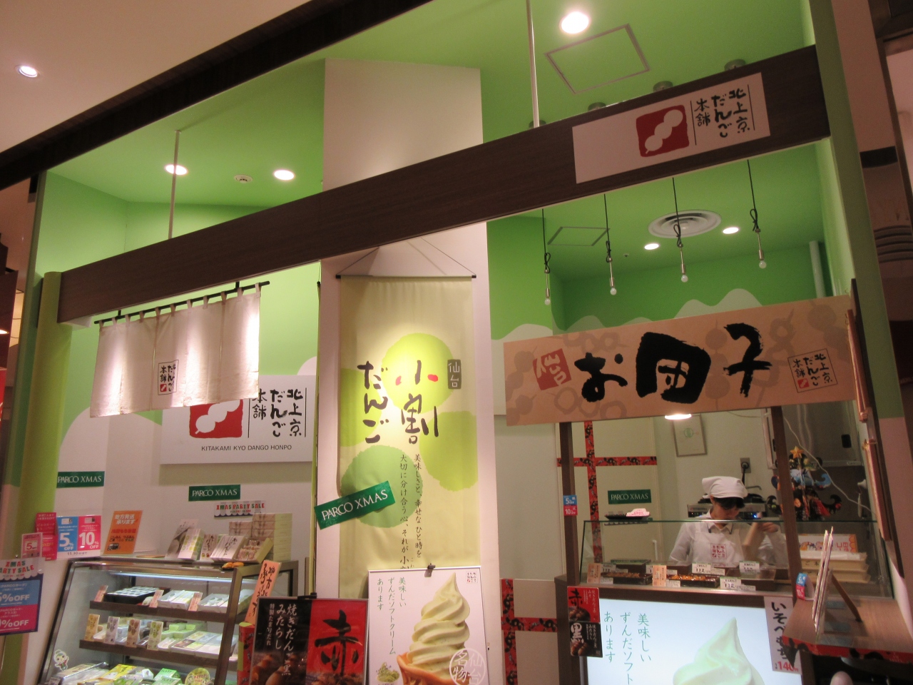 ここの名物はご当地のずんだもち・団子でしょうか。若い人たちの人気はずんだ(味)のソフトクリームだそうです。訪れたこの期(11月・秋)は、赤味噌の焼きだんご、みだらしだんごが売りでした。思わず1個注文食べちゃいました・・旨ぁ!- 旅行時期