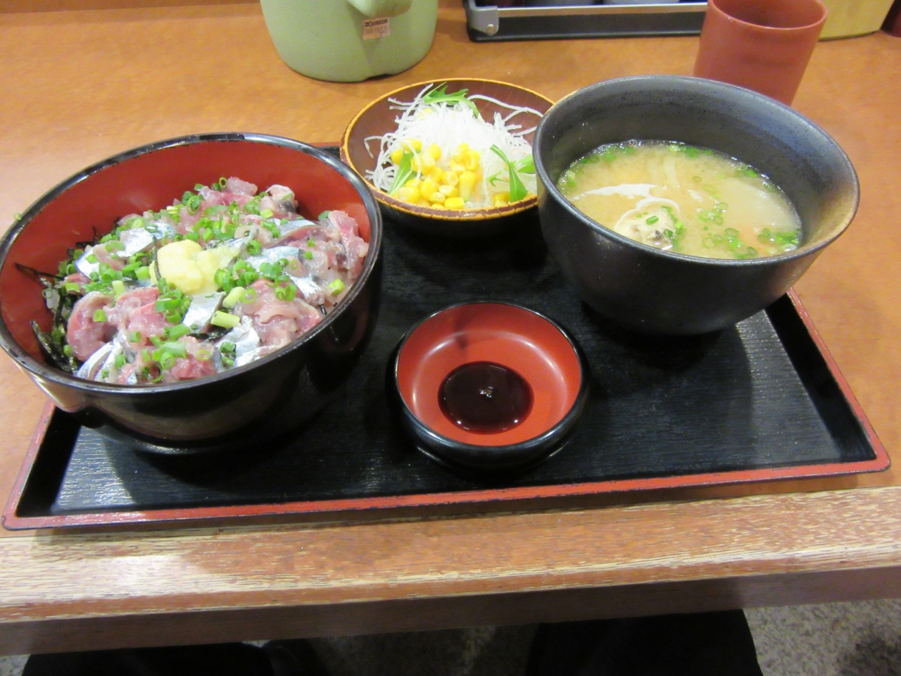 名前の通りマグロ中心にした海鮮類丼屋さん。食券は自動販売でカウンター席のみ。テイクアウトもしています。昼時入ったら混んでいました。この日のランチ限定500円はお得感あり。生サンマ丼なるもので美味しくいただきました。まあこのお値段、納得。