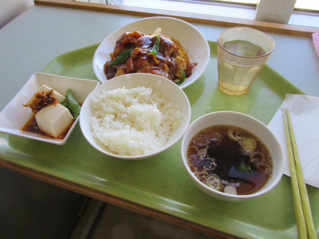 展望台見学の後、寄りました。とても広い食堂です。食券販売機で食券購入、セルフサービスです。職員さんと一緒ですが、観光・一般、グループの方の姿見られました。