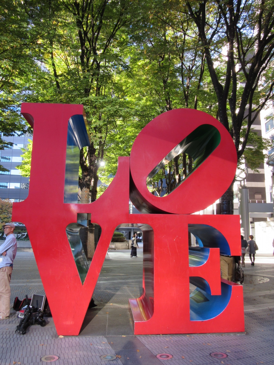 新宿副都心の超高層ビル群のひとつです。ビルの観光的スポットとして皆さんコメントされている赤い「LOVE」文字のオブジェ。確かに写真撮られている光景あります。プロらしき本格的な方も・・。