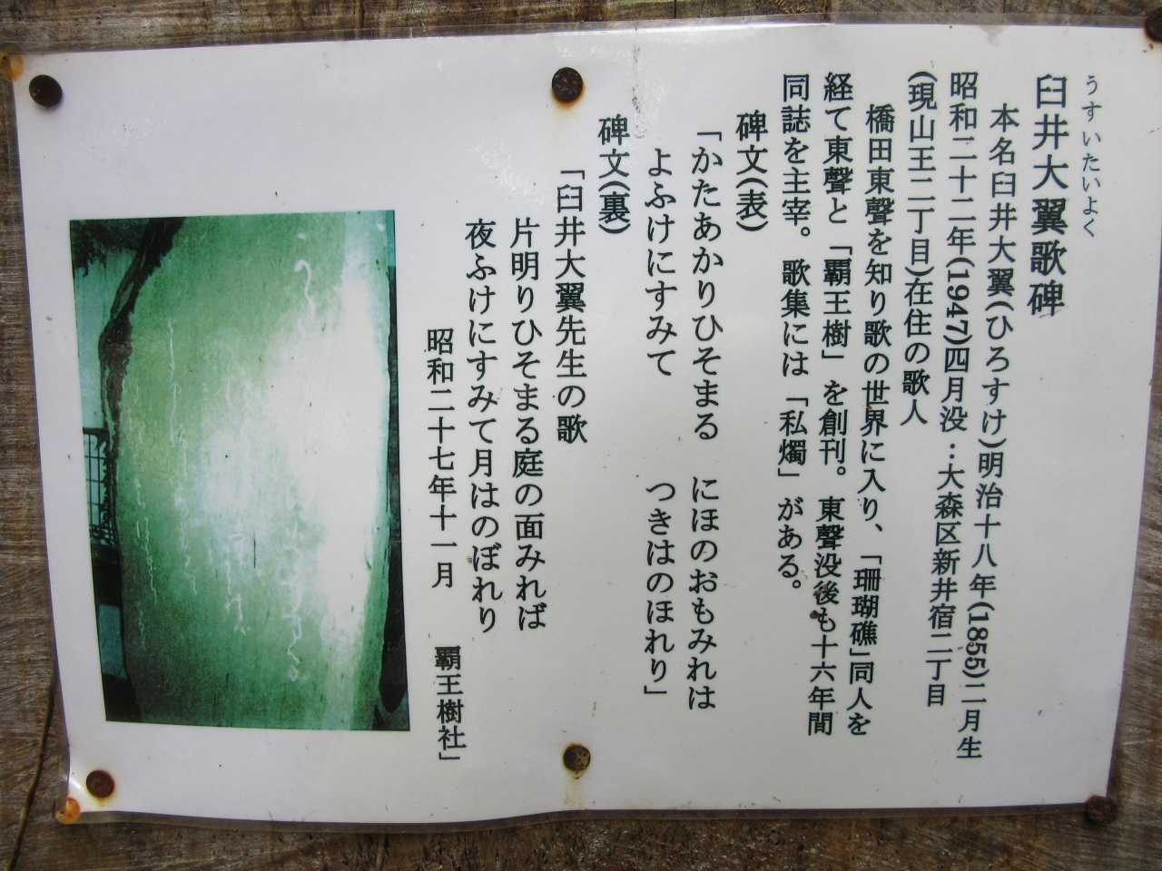 また、神社裏手(横)側に臼井大翼歌碑があるのですが、小屋で遮られてしまっています。