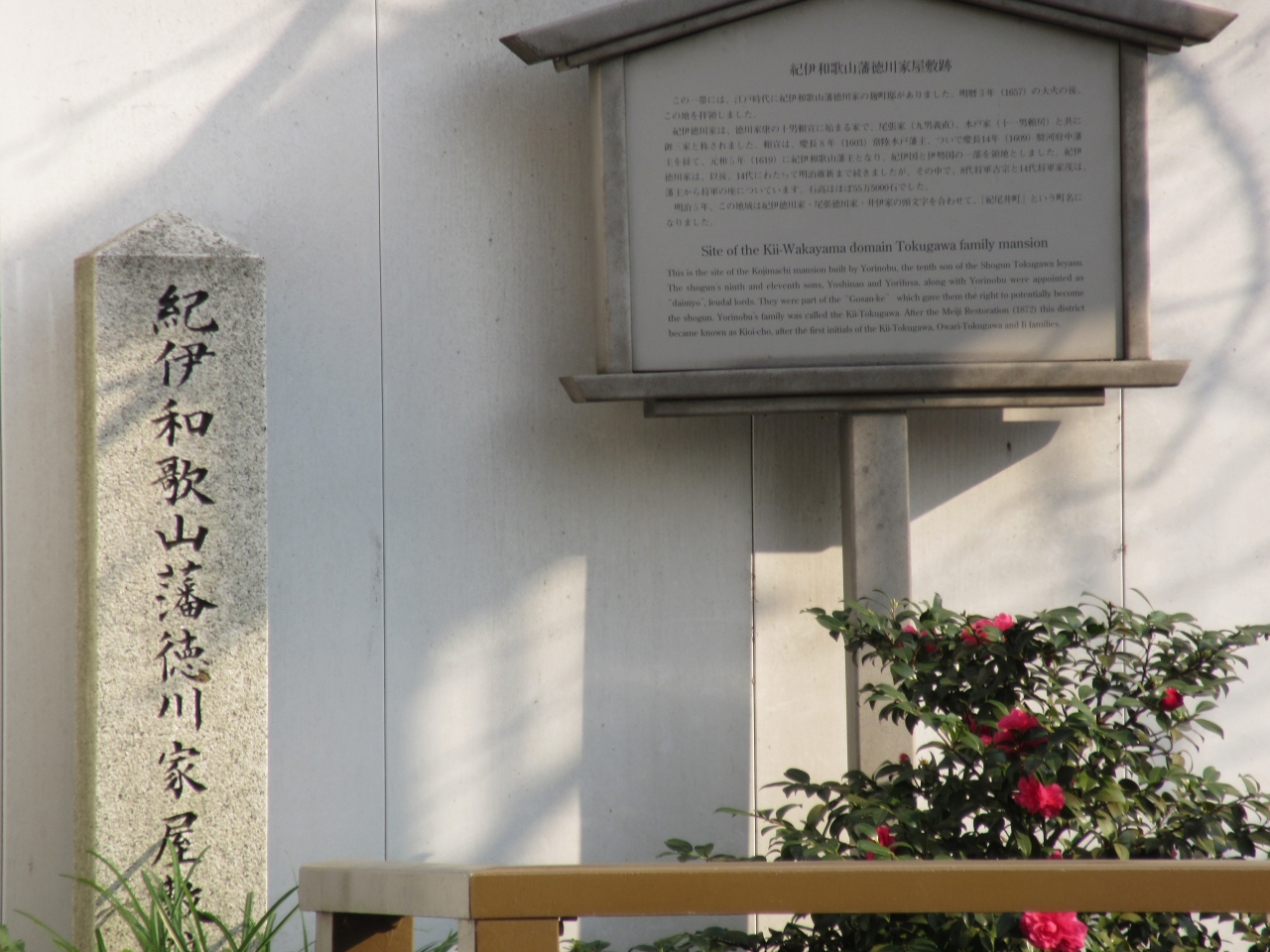 赤坂見附赤あら坂見附からホテルニューオータニに向かう途中、弁慶橋渡る。そこに史跡跡碑が建っている。よく見ると「紀伊和歌山藩徳川屋敷跡」とある。