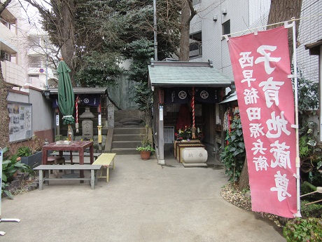 高田馬場駅(JR/地下鉄)から西早稲田へ行く途中、大きな提灯・ノボリが目立つ。