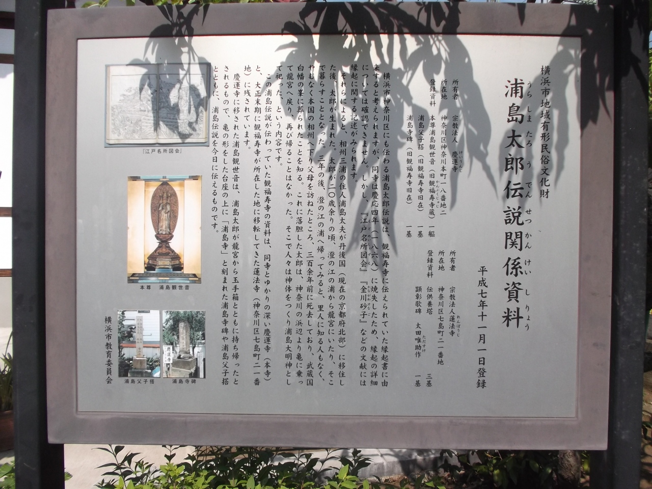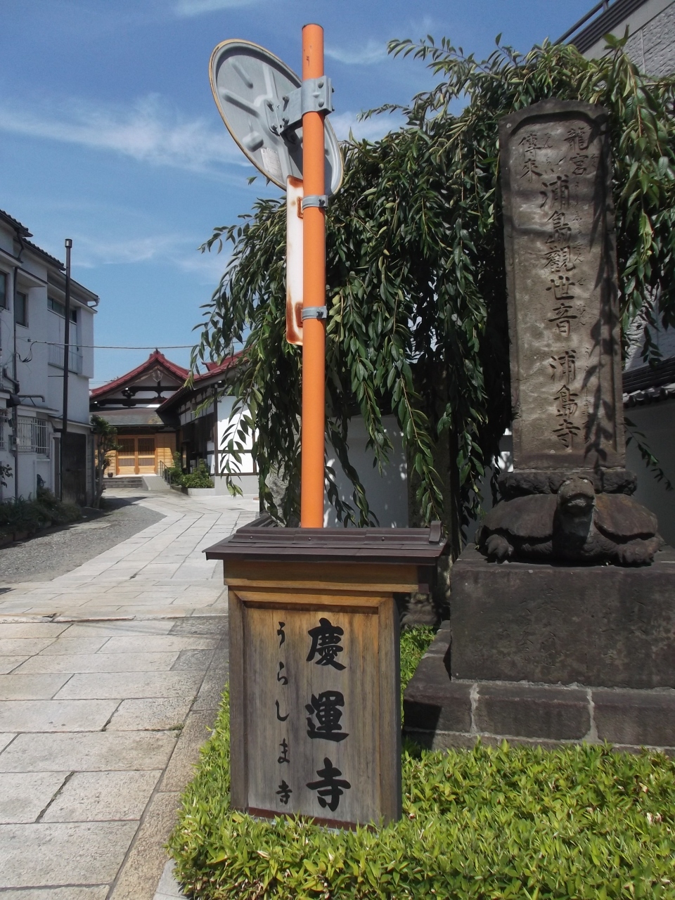 浦島寺ですって・・浦島太郎ゆかりです。浦島伝説の数々の資料を所蔵、中でも竜宮城から玉手箱とともに持ち帰ったという観音像など、お堂・浦島父子の供養塔も。門前には浦島観世音の標石があります。台座は亀の石、見どころです。