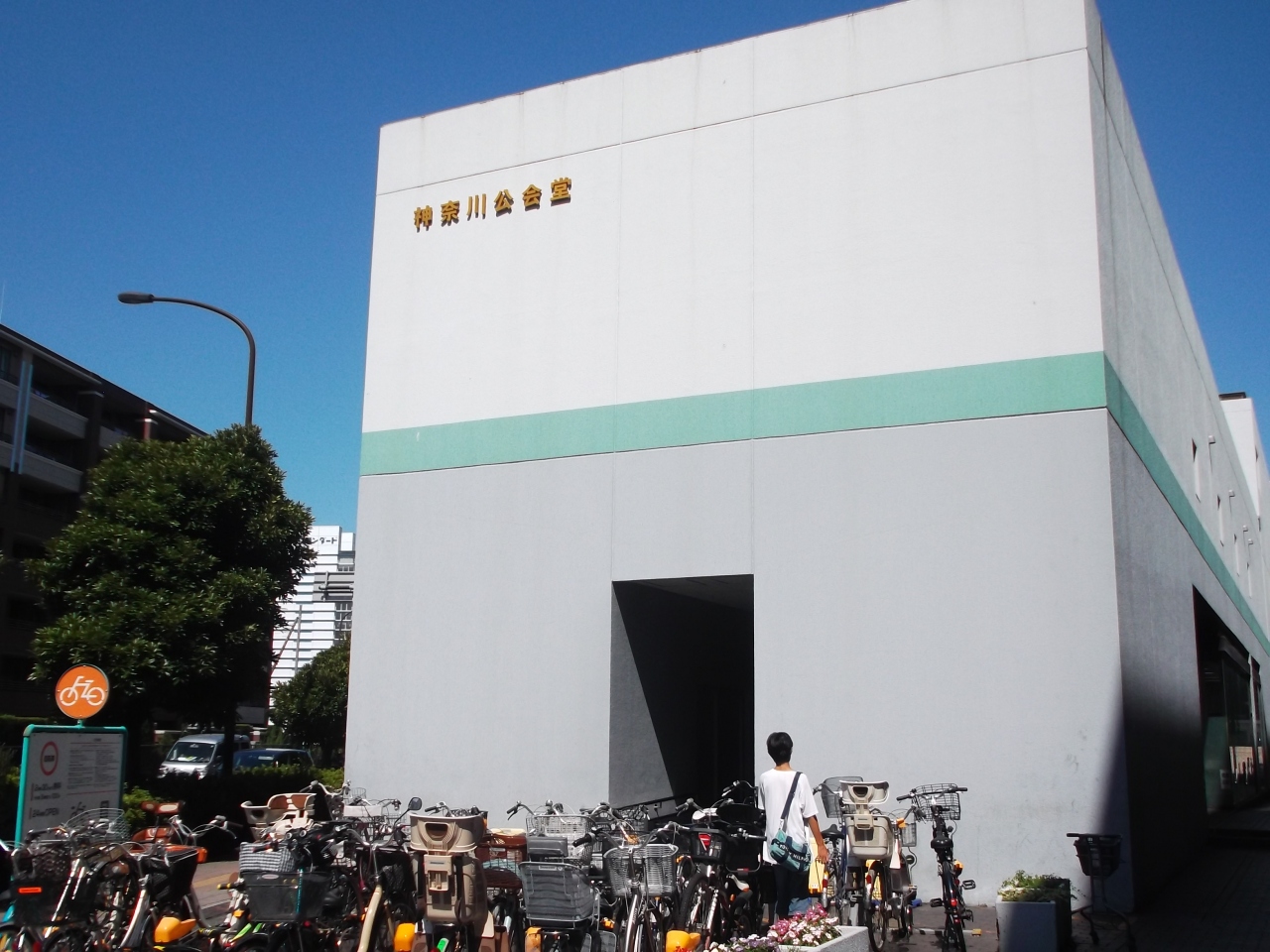 東神奈川のイオンの裏手、国道1号線沿いにあります。見た目殺風景な建物でこれが公会堂と思うところです。正面入口際が事務所で中には講堂・会議室等があり、文化芸術の催し等ある時は人出があります。建物前には彫刻モニュメントがありました。