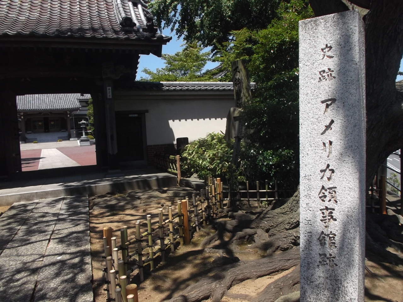 本覚寺山門前にその碑があります。高台に位置しており眺望よし。開港当時は横浜一帯を見渡せる絶好地をうかがわせます。山門を白ベンキに塗ったのが我が国の塗装の始まりともいいいますが、領事館に提供した寺院は屈辱的だったとも・・。- 旅行時期