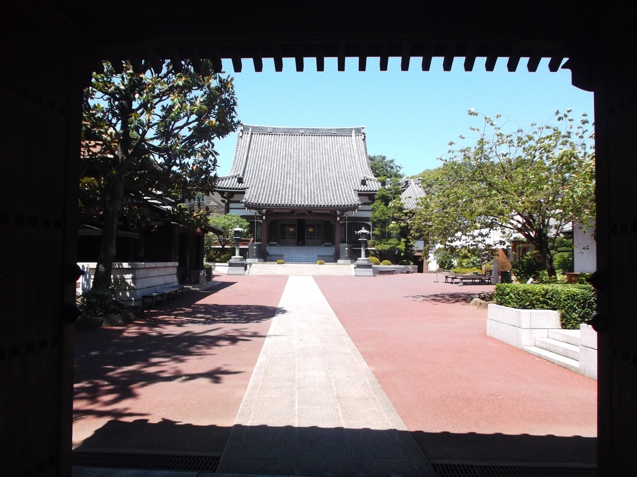 境内は広く、山号「青木山」の本堂と庫裡、お堂・鐘楼が歴史ある古刹を醸し出しています。本堂から見渡す周りは墓地で、釈迦の涅槃仏が目をひきます。