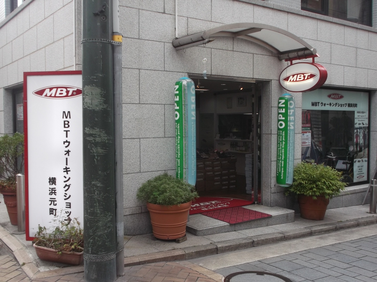 MBT公認(オフィシャルショップ)。ウォーキング・足の健康の専門店、ここならではのお店です。棚に整然と並んでいるウォーキングシューズ類、専属トレーナーが説明・相談にのります。元町大通りから汐汲坂に向かう通りにあります。