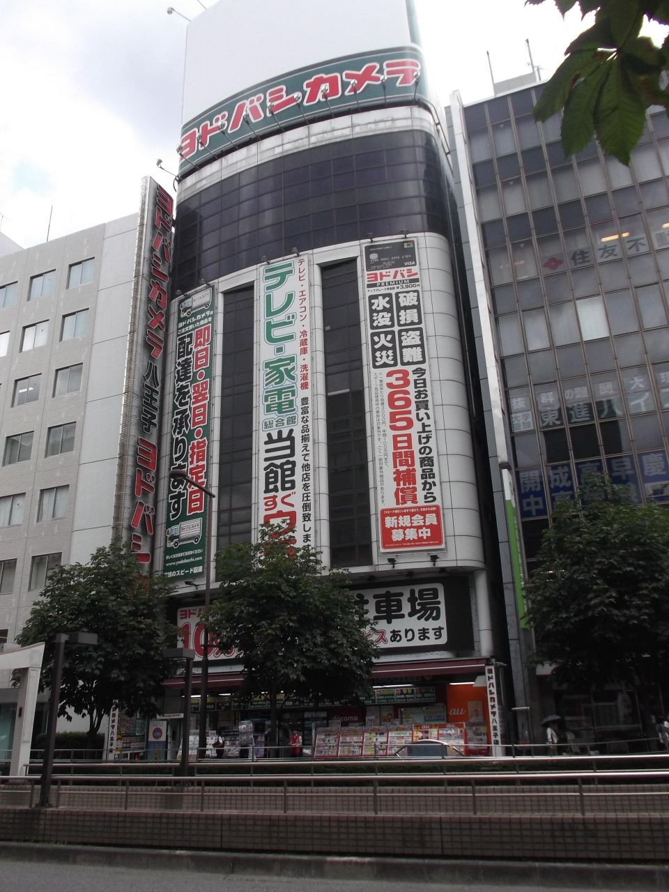 八王子市東町に道路面してヨドバシ本館と至近にテレビ・家電総合館があります。本館は7階フロアーですが、狭いスペースにそれなりの品揃えしています。1階は携帯スマートフォン関係、パソコン等は上です。
