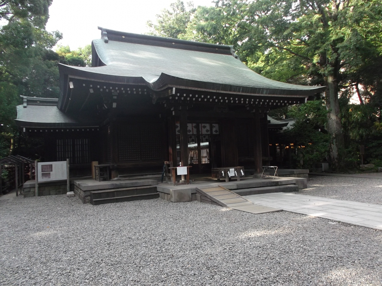大鳥居は木製では日本一(建立は平成)、扁額の文字は勝海舟のもの。
