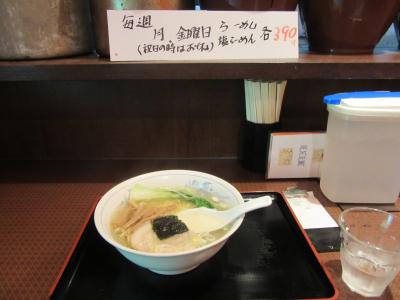 但し、この日金曜日。金曜日割引のこと。そこで、塩ラーメンいただく。通常600円ですって。チャーシュウも入ってなかなかこの値段では食べられない。昔なら未だしも。