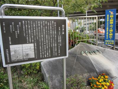 東京国際フォーラムに行った際、かっては東京都庁がったところ・・なんて思いにふけていたら、ありました。406号線沿いJR線ガード方面に。「東京府舎跡」の古い石碑と解説版。人通りあるのですが見る人・写真撮る人いません。
