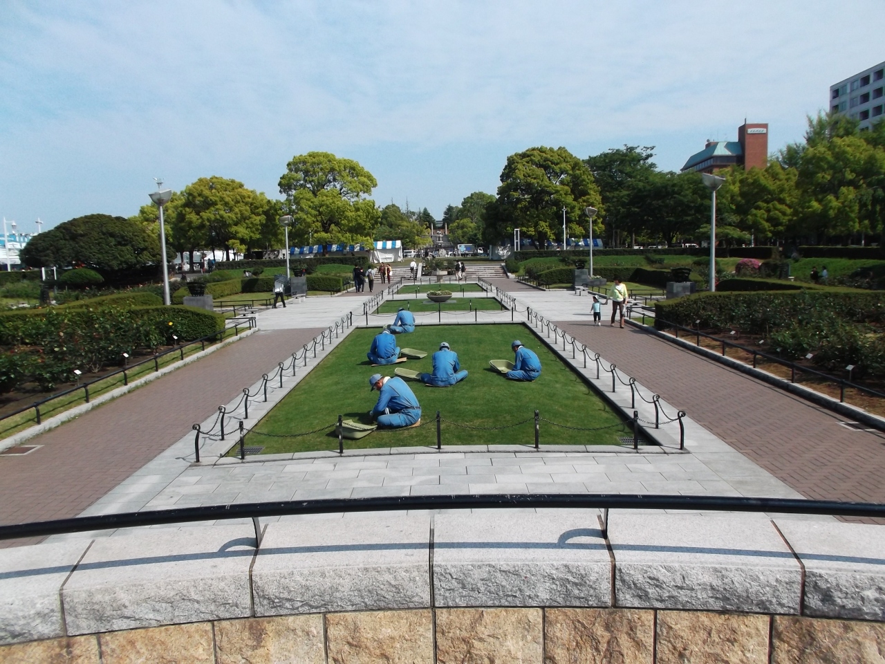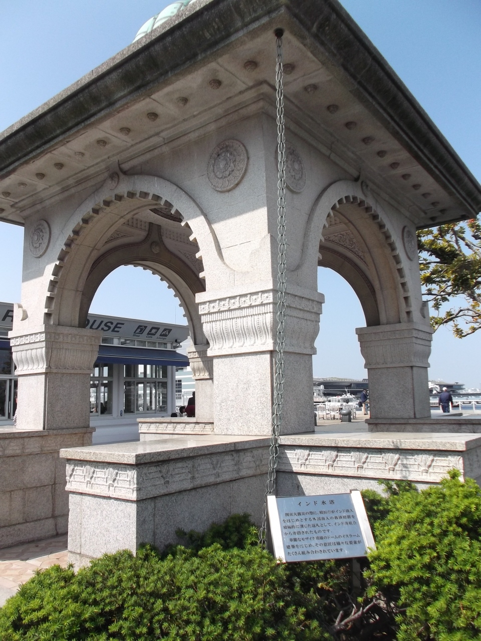 赤レンガ倉庫・象の鼻・大さん橋方面から山下臨港プロムナードの終起点、山下公園に入るとイスラム寺院にありそうな柱とドーム型屋根の建造物が目に入ります。