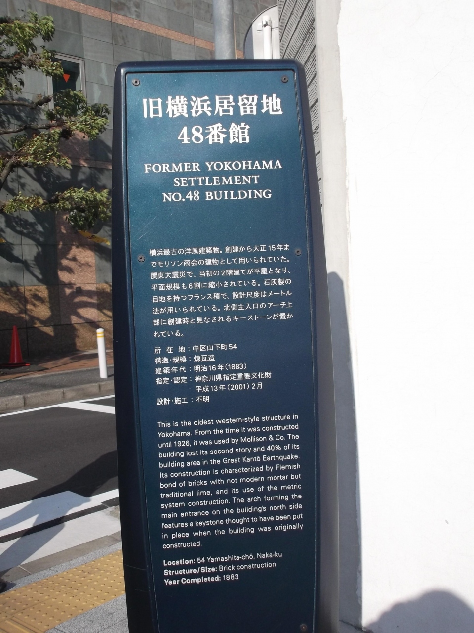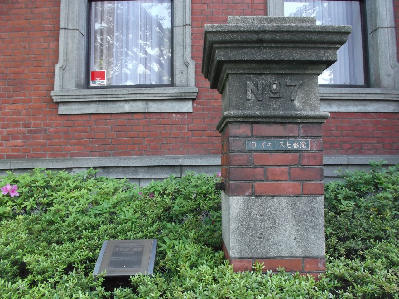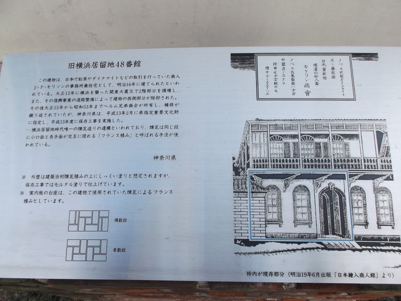 ところは横浜都市発展記念館中庭。卵型で煉瓦造りです。解説プレートがあります。